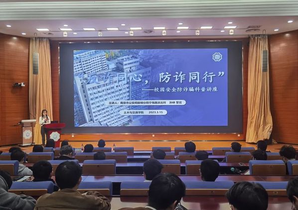 为全面做好防范电信诈骗宣传工作,有效遏制电信诈骗案件的高发态势,提高大学生的安全防范意识,2023年3月15日18:30,由我院主办,学院团委承办的校园安全防诈骗科普讲座在西康路校区科学会堂301成功举办,本次活动邀请了南京市公安局鼓楼分局宁海路派出所孙林警官,保卫处治安科朱长婕老师、学院团委副书记李倩老师以及学院部分本科生参加了本次活动。