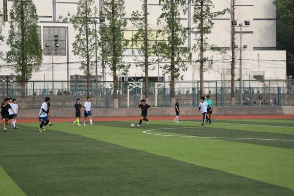 上半场,土木院中场15号厉治平、22号潘驭航、10号张建平通过传控配合掌控比赛节奏,潘驭航找准时机长传吊身后,9号周泽龙跑出单刀,面对门口,推射远角得分,开局10分钟土木院1:0领先。随后比赛展开拉锯战,计信院在持续的反击中找准时机扳回1球,比分来到了1:1,土木院队员互相鼓励,并没有因此而丧气,反而展现出了更加昂扬的斗志!最终中场成绩也定格在了1:1。