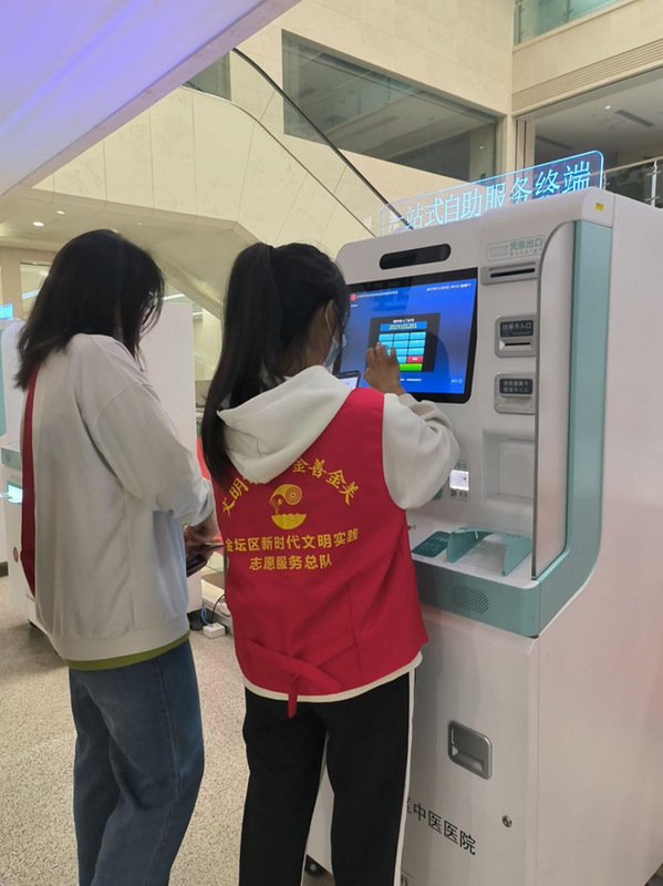 2023年10月,我院团委组织3522vip浦京集团官网22级本科生志愿者,在常州市金坛中医院举办了以“导志愿之路,医患者之心”为主题的志愿服务活动。在医院值班的志愿服务负责人对志愿者们进行了简短的培训后,将志愿者们安排到医院自助服务机、急诊服务台、放射科导诊台、检查科签到台等区域进行志愿服务。