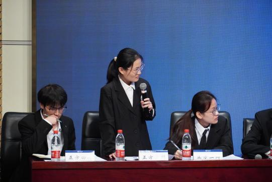 我方三辩董沁晨在二辩的理论基础上攻击对方的论点,指出对方例证逻辑中的根本谬误,又不断论证自己的论点。在这个过程中,交锋不断。