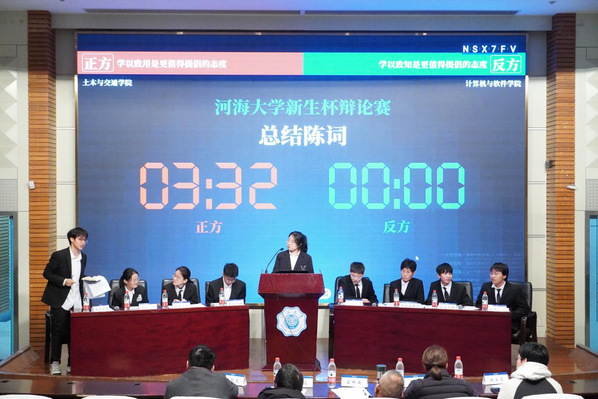 2023年12月10日上午10:00,“新生杯”辩论赛季军赛在江宁会议中心举行。我院和计算机与软件学院就“学以致用/学以致知是更值得提倡的态度”为辩题展开了精彩的辩论。